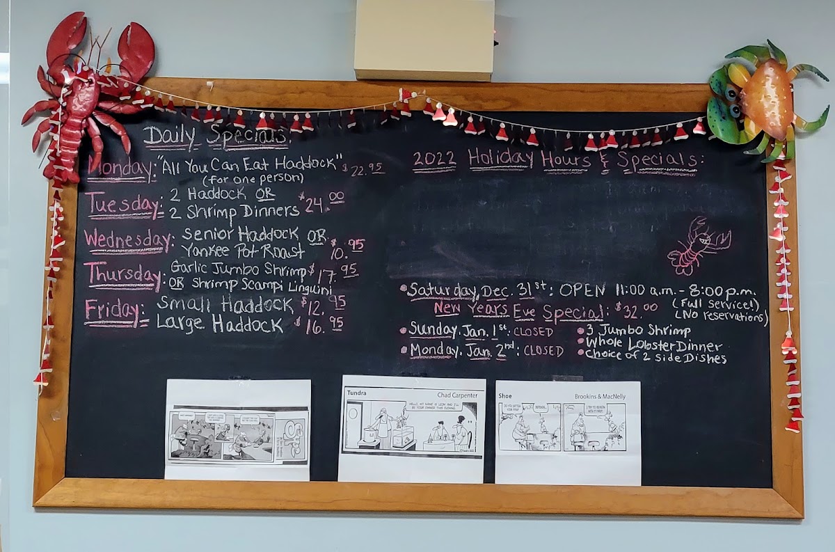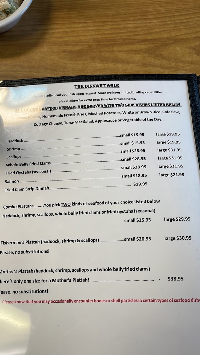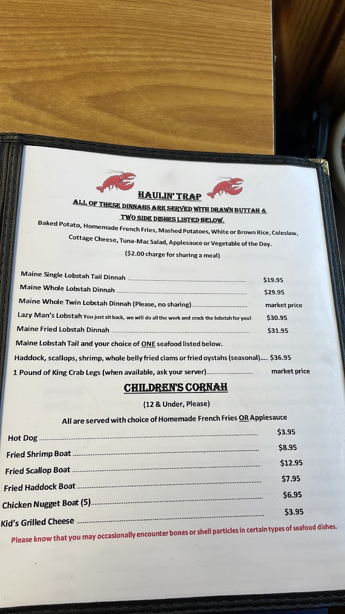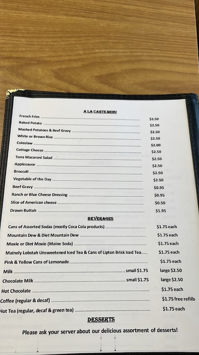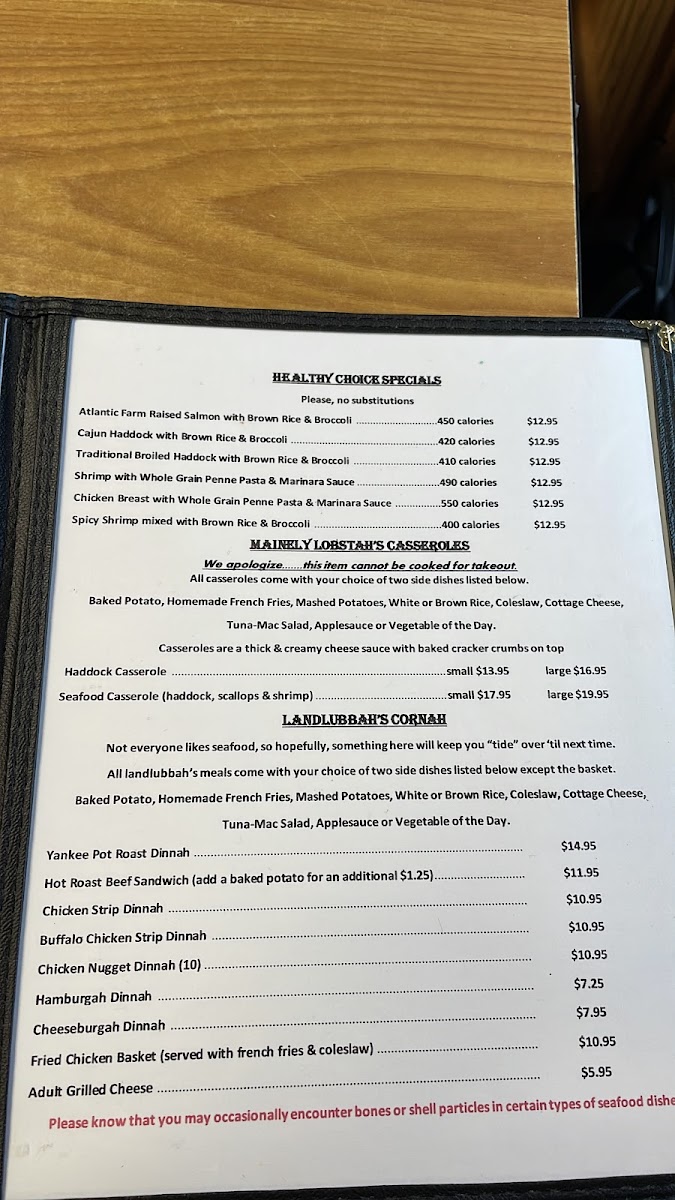 The menu features highlights such as their signature Lobster Roll, hearty Lobster Dinners, and crispy Fish & Chips, inviting diners to enjoy familiar flavors sourced directly from the coast. Alongside these, you’ll find comforting sides like Shrimp Bacon Mac and Cheese and seasonal vegetables, creating well-rounded plates that suit both satisfying meals and lighter choices.